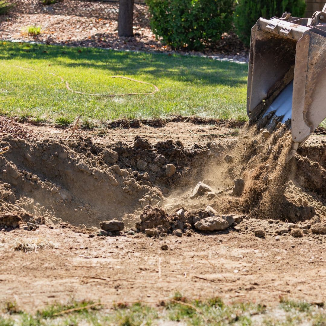 Depending on your property, this could mean excavating and removing dirt from the site or bringing in additional fill dirt to raise low areas. In some cases, there is enough existing dirt onsite and the job is simply moving soil from high spots to fill in the low areas.